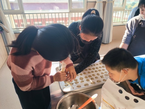 為踐行生活化教學(xué)理念,近日,小海鷗班開(kāi)展“烤芝麻薄餅”實(shí)踐活動(dòng)。課堂上,教師結(jié)合培智學(xué)生特點(diǎn),將操作步驟拆解為稱(chēng)重、攪拌、撒芝麻等簡(jiǎn)單環(huán)節(jié),AB組學(xué)生分工協(xié)作:A組獨(dú)立完成食材混合,B組在輔助下參與鋪餅、撒料。烤箱升溫間,孩子們緊盯烤盤(pán),鼻尖縈繞陣陣香氣。當(dāng)金黃酥脆的薄餅出爐,大家爭(zhēng)相品嘗自己的勞動(dòng)成果,臉上洋溢著滿足的笑容。此次活動(dòng)不僅鍛煉了學(xué)生的動(dòng)手能力與協(xié)作意識(shí),更讓他們?cè)谏罨瘓?chǎng)景中感受勞動(dòng)樂(lè)趣,踐行五育融合育人理念。